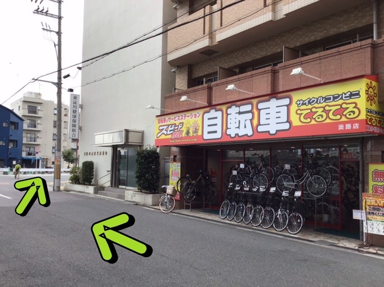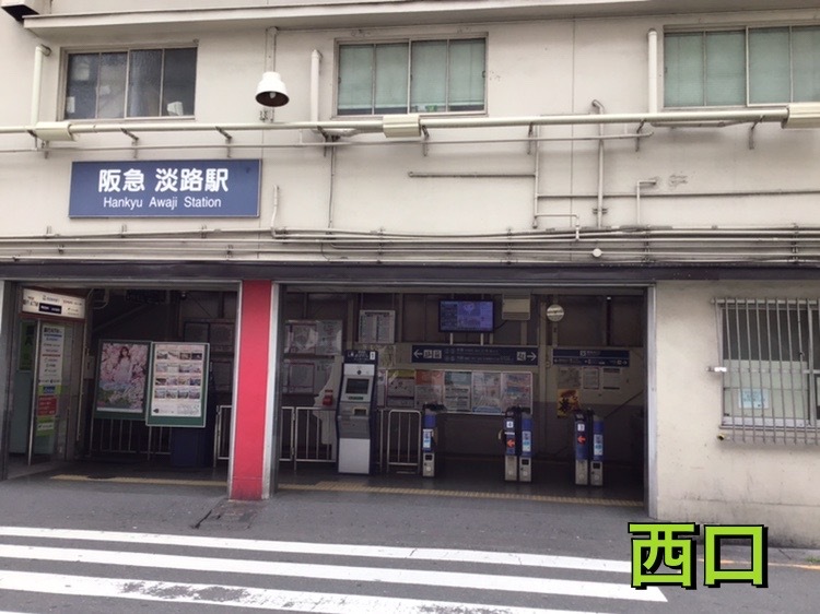 阪急淡路駅の西口の改札口を出て、左側へ真っ直ぐ行きます!