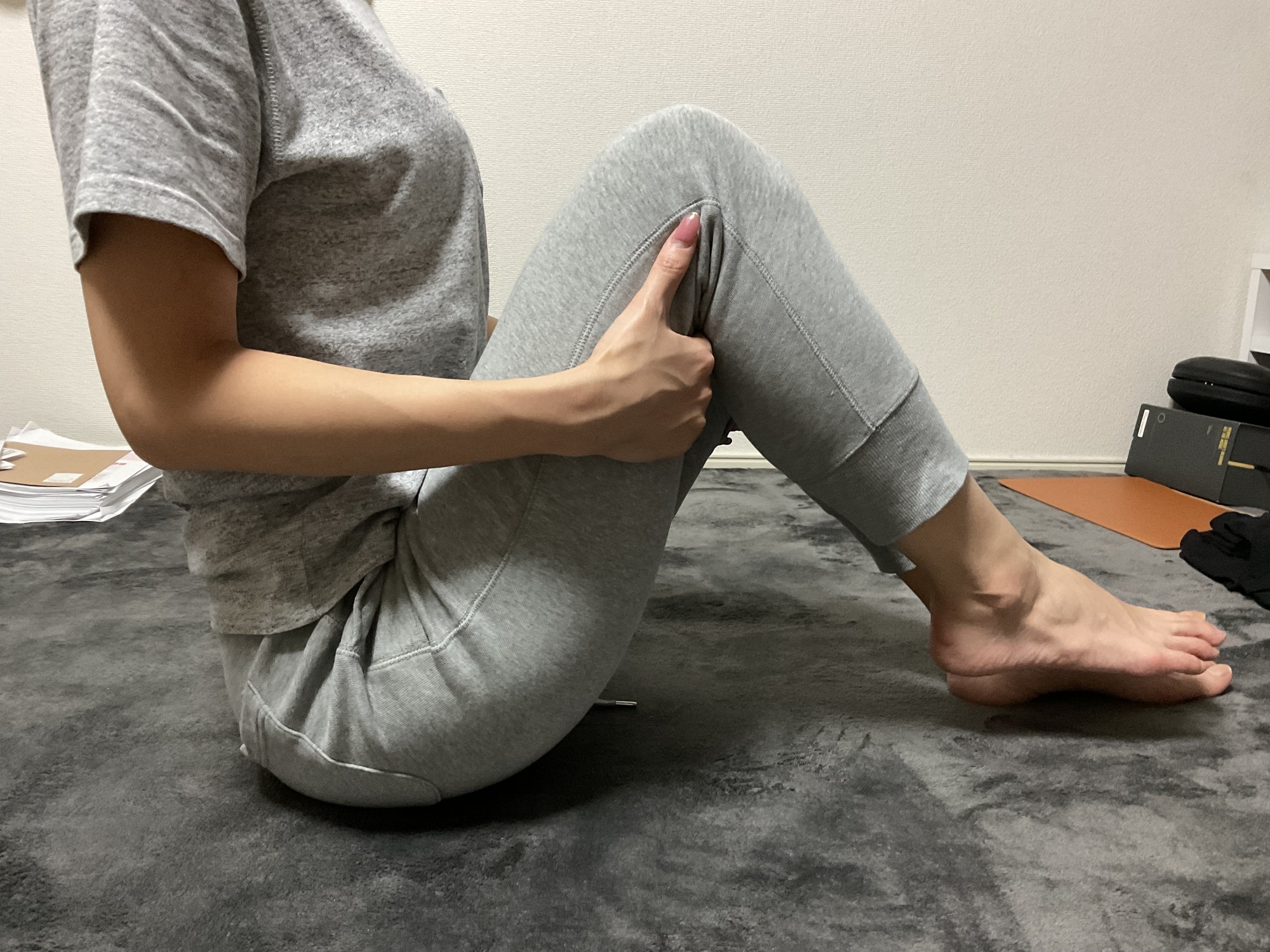 膝を伸ばして座った状態で足を掴むようにして太ももの裏を伸ばすものですが,