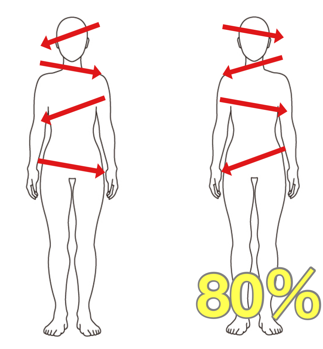 心臓は若干左にあり、一番大きな肝臓は右にあります、それらの影響から体にも捻れが生じるとされています。まとめ